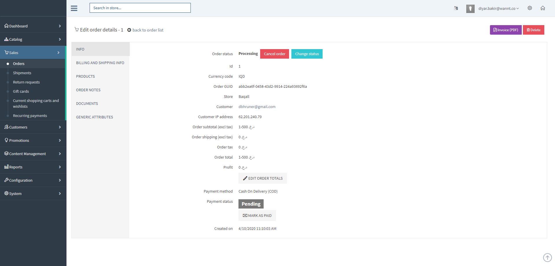 - گۆڕینیزانیارییەکانی هەژماری کڕیار لەلایەن ئەدمینەوە.